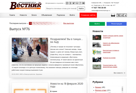 ![]() Сайт газеты "Вестник г. Отрадного"Информационный портал независимого СМИ в Самарской области. СМИ |